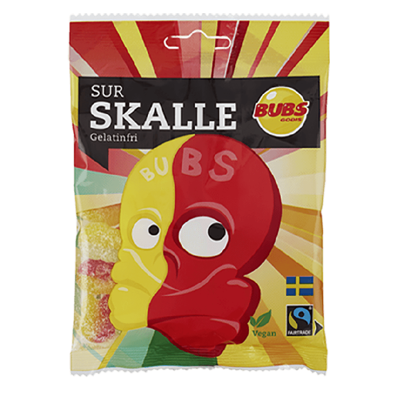 Bubs is a Swedish candy brand known for bold flavors, playful designs and a strong commitment to vegan and gelatin free candy. All products are made in Sweden and created for people who care about both taste and content. With its skulls and sour mix, Bubs has become a standout name in modern Swedish candy.