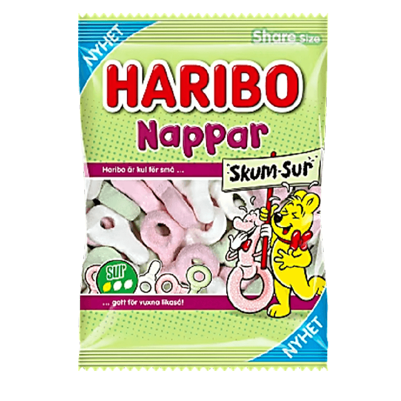 Haribo is a trusted brand across Europe, and these sour nappar are especially popular in the Nordic countries. Perfect for sharing or adding a sour twist to any candy selection.