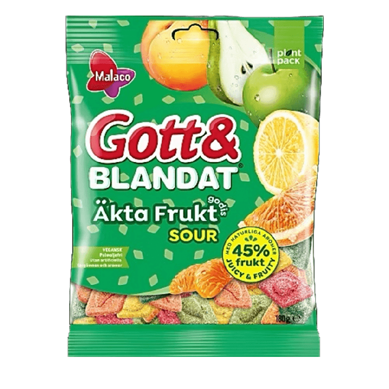 Description / Malaco Gott & Blandat Real Fruit Sour 180 g